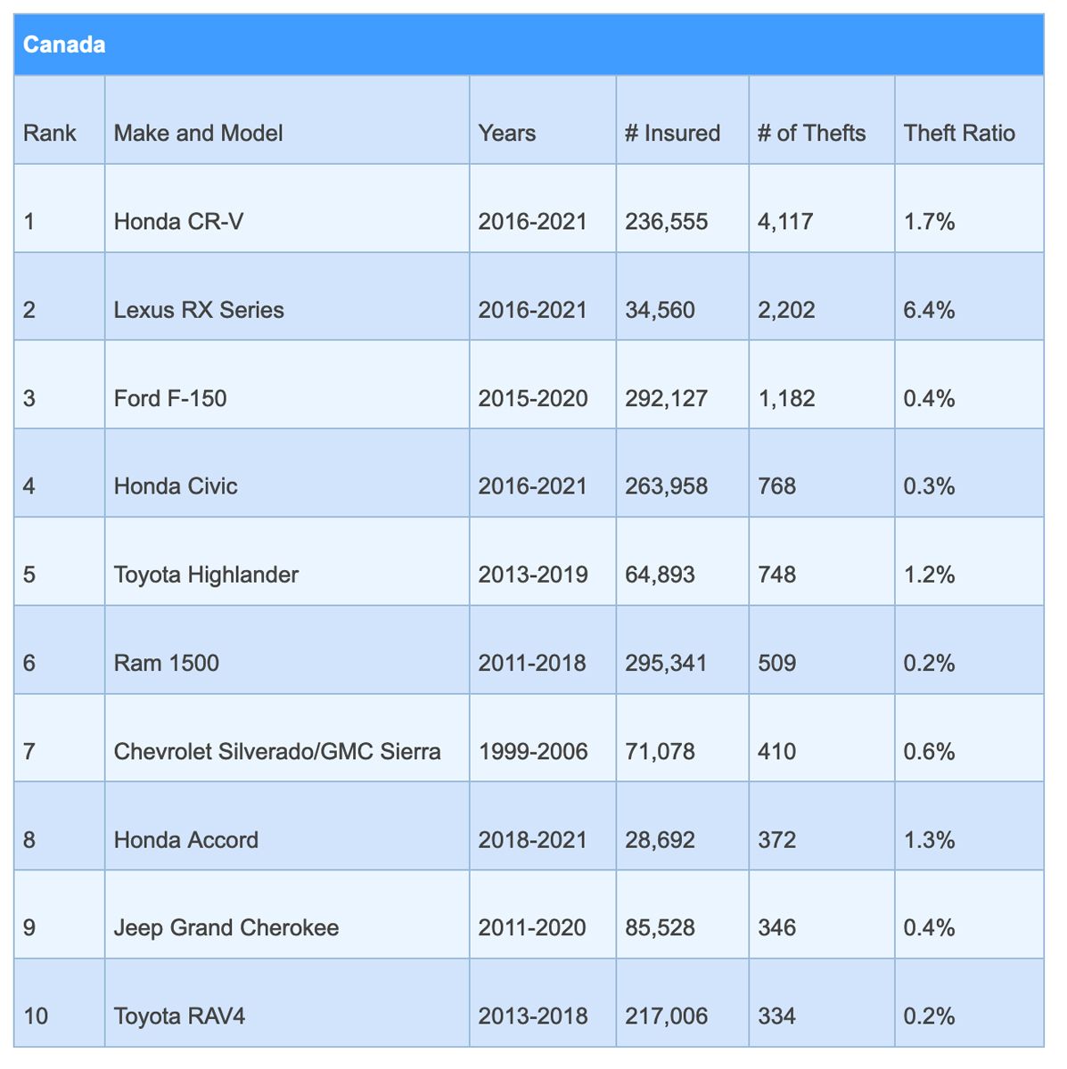 Source : www.mychoice.caCanada’s 10 most stolen cars and what we can learn from that | Driving